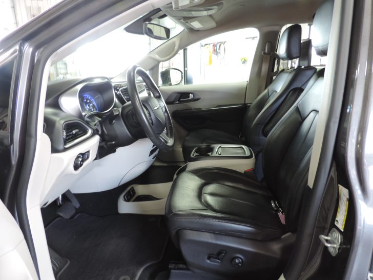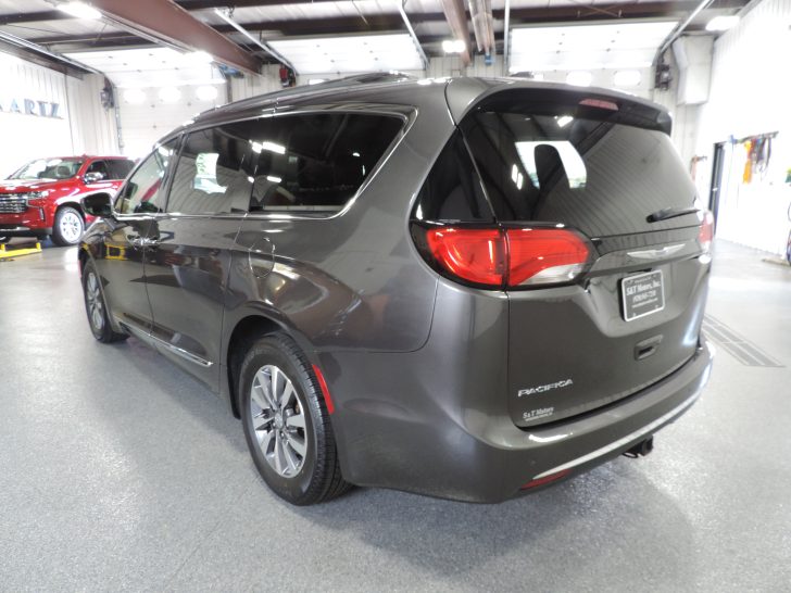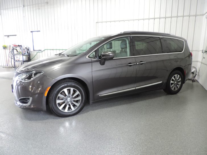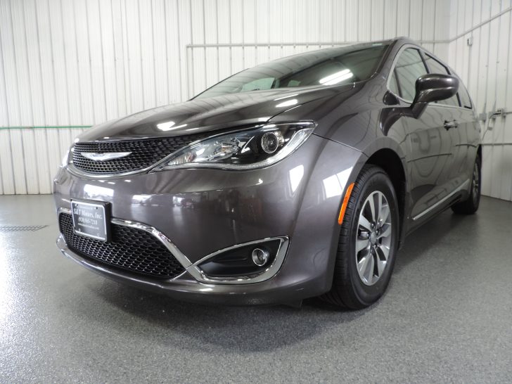Just traded here..one-owner 2020 Chrysler Pacifica Touring L Plus. Locally owned & serviced. Very nice condition inside & out. Complete with a sweet vehicle history report. Non-smoker. Very nicely optioned w\ Touring Plus trim w\ dual power heated front seats w\ drivers side memory, leather wrapped HEATEDÂ steering wheel, heated second row seats, 2nd& 3rd row window shades, driver & passenger auto climate, dual power sliding doors, power tailgate, premium sound w\ factory NAVIGATION, U-Connect w\ Apple CarPlay & Android Auto, factory ENTERTAINMENTÂ w\ dual DVD screens & wireless headphones ( still in the wrapper-never used ) middle row & third row full stow-n-go, universal garage door opener, blind spot & rear cross traffic detection, rear park assist, proximity remote access w\ push button start & remote start, 17″ alloy wheels with like new Yokohama tires, factory trailer tow, HD radiator & much more!